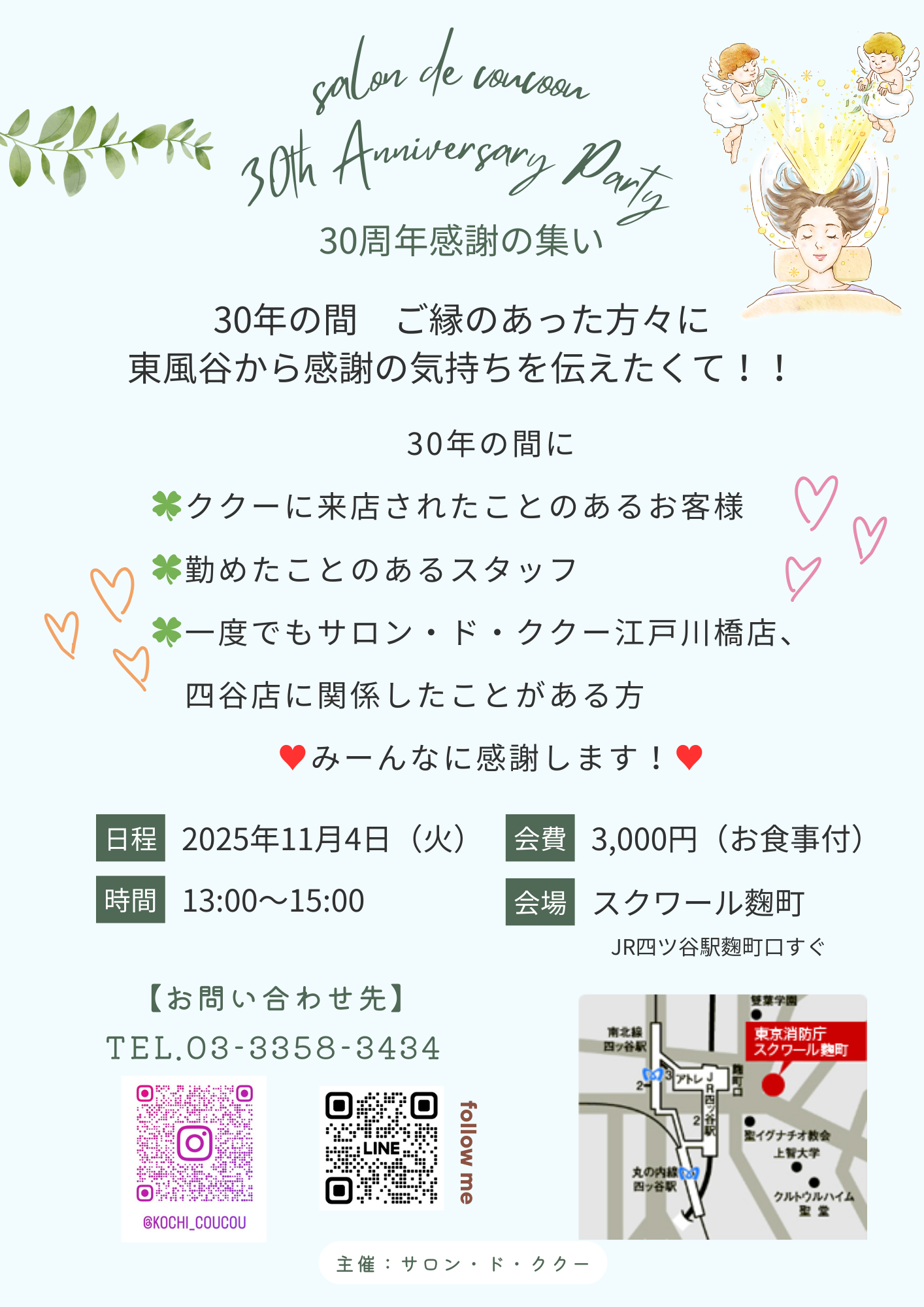 2025年11月4日(火) 『ククー30周年感謝の集い』のご案内